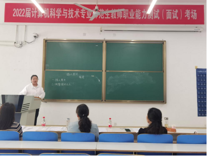 4月25日,伟德在计算机楼一楼三个教室开展了2022届计算机科学与技术专业师范生教师职业能力测试(面试)工作,共有65名师范专业学生参加了面试。因疫情原因,部分学生通过在线形式参加面试。