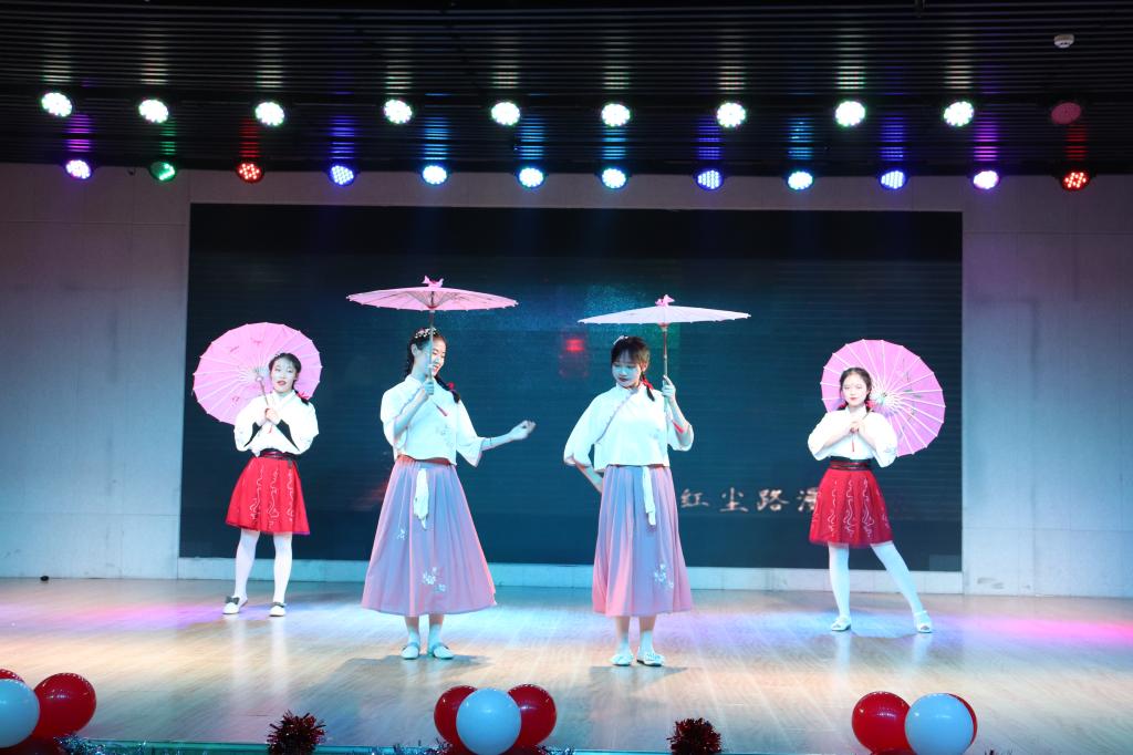 晚会现场,节目精彩纷呈、气氛热烈,处处洋溢着青春活力。魅力四射的街舞《Electric Kiss》瞬间点燃现场气氛;歌曲《不染》婉转绵长、蕴藉柔美;小品《你的模样》用平凡的故事生动诠释了社会主义核心价值观“敬业”的内涵;由朱芷若等同学带来的《古风舞》婀娜多姿,曼妙灵动;歌曲串烧曲风多样,舞蹈串烧燃动激情,展现出伟德学子的青春风采。刘党英为现场观众带来独舞《小圆》,将民谣的悠扬韵律融入到精致的身体语言中,传达着感动与希望。晚会的颁奖环节,熊炎首先为伟德今年国家级、省级竞赛获奖同学及其指导教师颁奖,随后刘党英、祁传达分别为获得2019年个人贡献奖的15名教师和年度贡献集体奖的10个团队颁奖。伟德师生2019年取得的硕果被一一呈现,台下掌声雷动,欢呼声此起彼伏。颁奖过后,由伟德学生会新闻部成员带来的朗诵《少年中国说》深情且激昂,令人动容、催人奋进。刘世翔与王臣等带来歌曲《当爱已成往事》,以师生同台献唱的形式点燃了观众热情,将现场气氛推向高潮。徐崇茗老师带来的美声演唱《不忘初心》,展现出伟德教师“不忘初心,牢记使命”,为我国培养社会主义合格建设者和可靠接班人而不懈奋斗的信心。晚会在《明天会更好》的歌声中圆满落下帷幕。