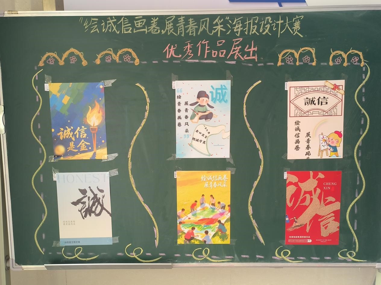 在活动过程中,同学们充分发挥想象力,认真构思内容,通过色彩的搭配、元素的选取、画面的布局展现自己对诚信的理解。本次活动共征集到作品几十幅,形式多样:有的以简洁的画面突出诚信在人际交往中的重要性;有的则将“一诺千金”“言而有信”等与诚信相关的文字进行创意设计,使其成为海报的核心元素。在创作过程中,不少同学还通过线上小组讨论的方式,相互交流想法,完善作品。这些作品不仅仅是艺术创作,更是学生们对诚信这一传统美德的郑重承诺。活动结束后,筛选出来的优秀作品被制作成实体海报,在学院教学楼进行展示,让诚信文化在校园内广泛传播,持续传递向上的力量。