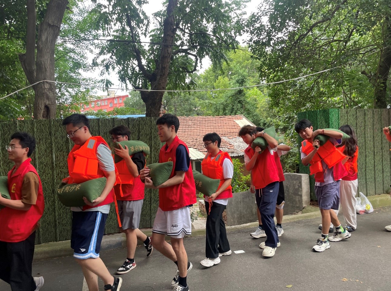 由于华森社区部分建筑处于低洼处,容易发生内涝灾害。为增强社区整体防洪抗洪能力,保卫人民生命财产安全,支部志愿者们与华森社区工作人员一起进行了抗洪抢险演习。面对“险情”,大家搬运防洪沙袋、构筑挡水堤坝、解救被困群众,分工明确、配合紧密,展现出良好的协作能力与应急素养。