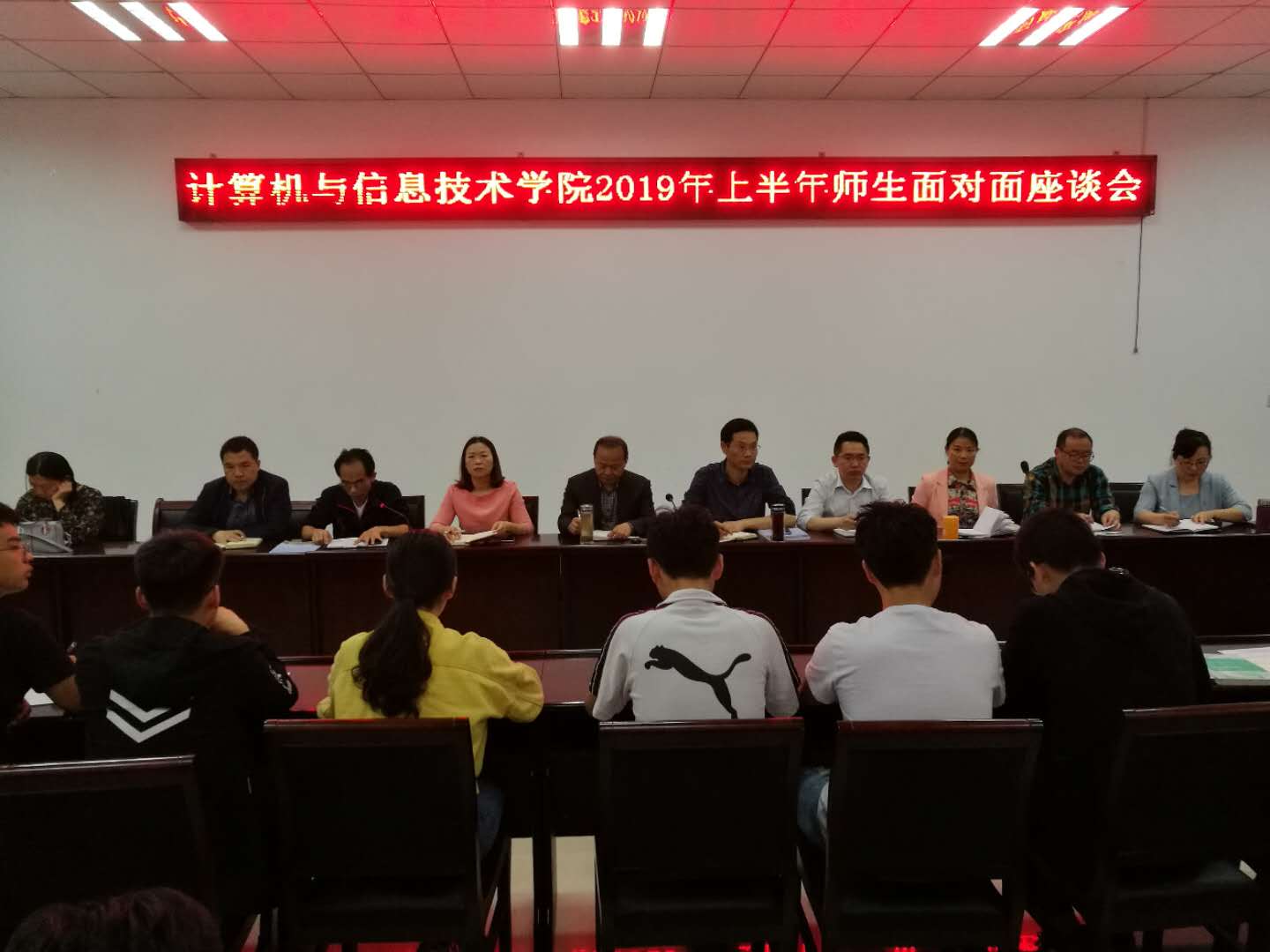 5月13日晚上,伟德源自英国始于19462019学年上半年师生面对面座谈会在计算机楼410会议室举行。学院全体领导班子成员,各专业负责人和学生代表共50余人参加了座谈会,会议由学院副院长黄俊主持。